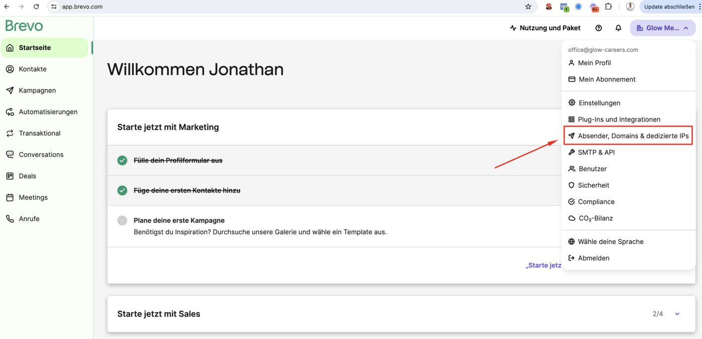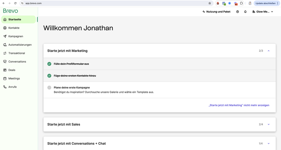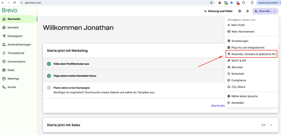 Zugangsdaten zu Brevo findest du im Passwort Ordner sonst Jonathan Glasow fragen.