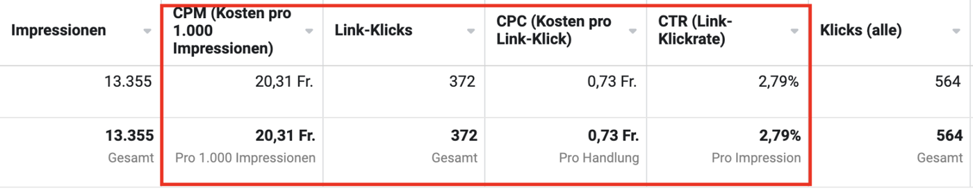 - zu hoher CPC bedeutet, dass die Adsets verbessert werden müssen, um mehr Menschen anzusprechen. (A/B Testings bieten sich an)